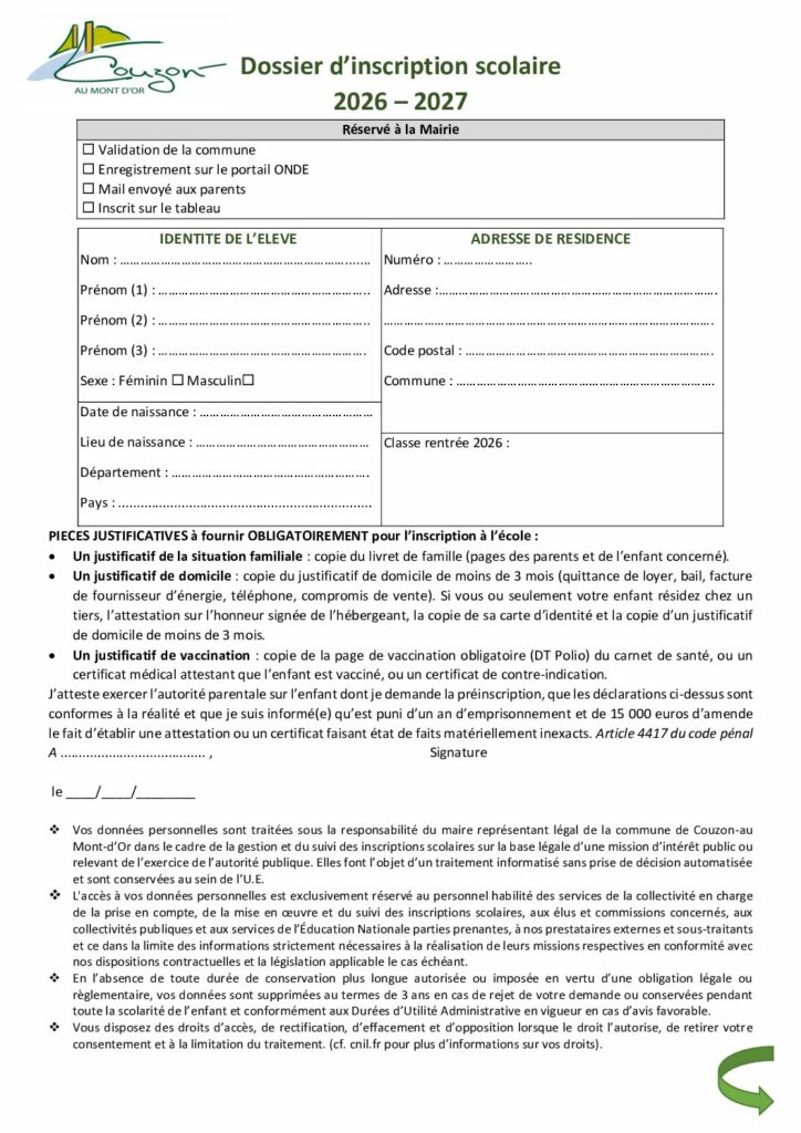 Accueil / INSCRIPTIONS SCOLAIRES